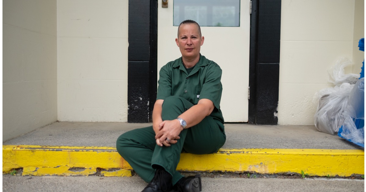 In a classroom on the second floor of this prison, sixteen men in faded blue and gray jumpsuits await the start of class. Each window—on opposite sides of the room—remains a few inches open.