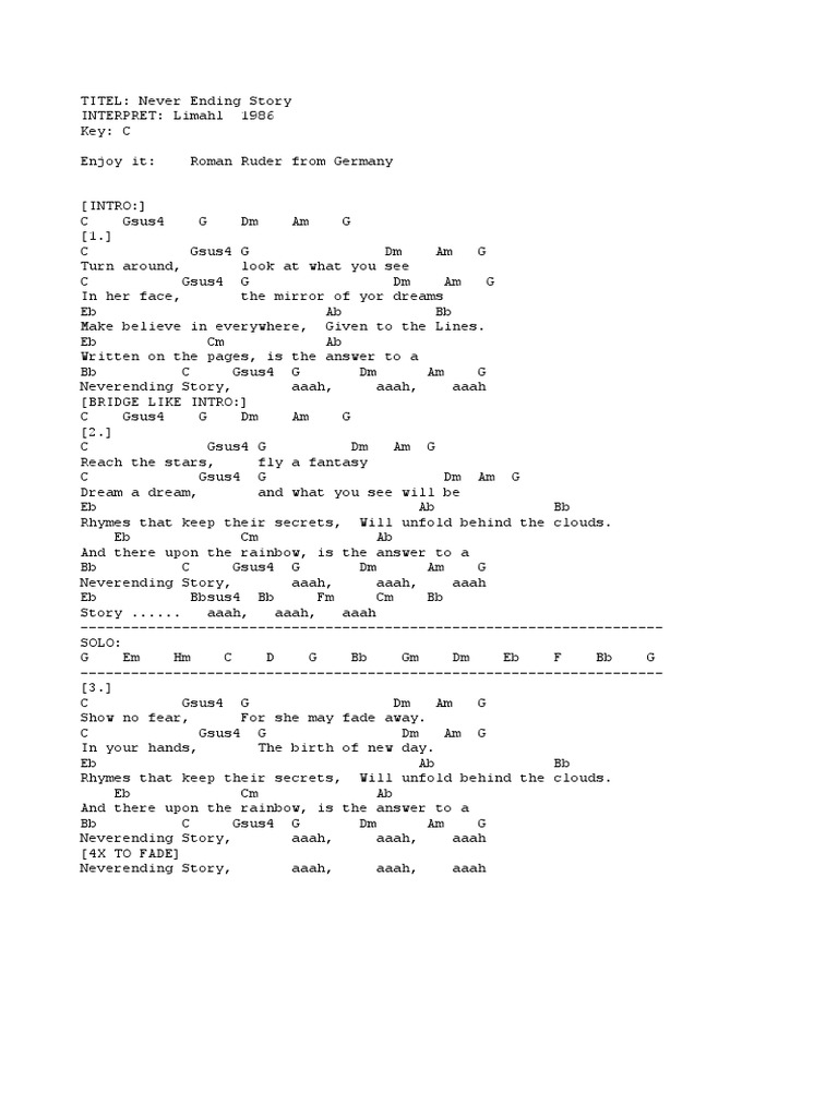 Never Ending Story Lyrics by Limahl from the Don't Suppose album- including song video, artist biography, translations and more: Turn around Look at what you see In her face The mirror of your dreams Make believe I'm everywhere Given in the light.