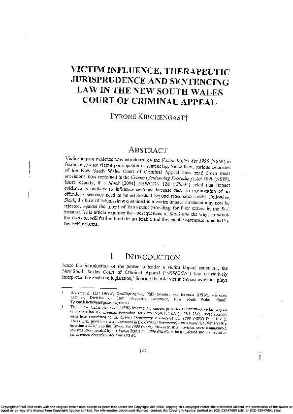 (PDF) Victim Influence, Therapeutic Jurisprudence and Sentencing Law in the New South Wales