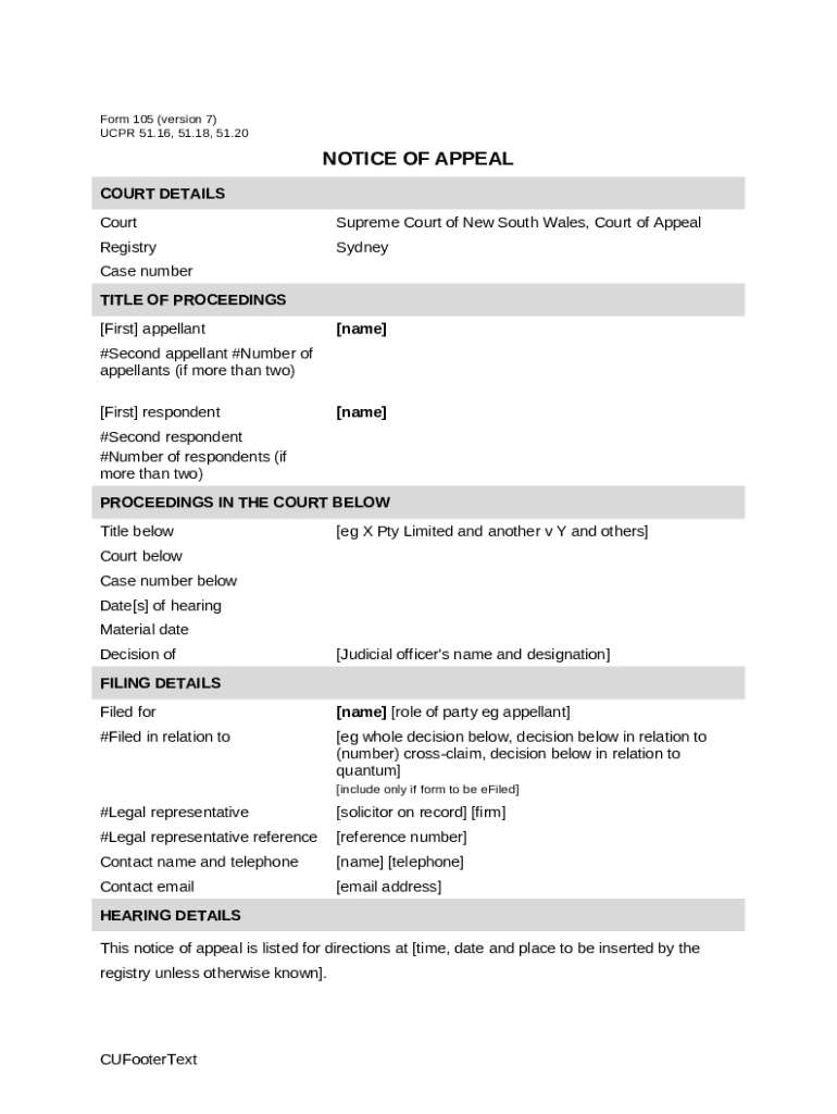 NSW UCPR 105 Notice of appeal (Court of Appeal) Doc Template pdfFiller