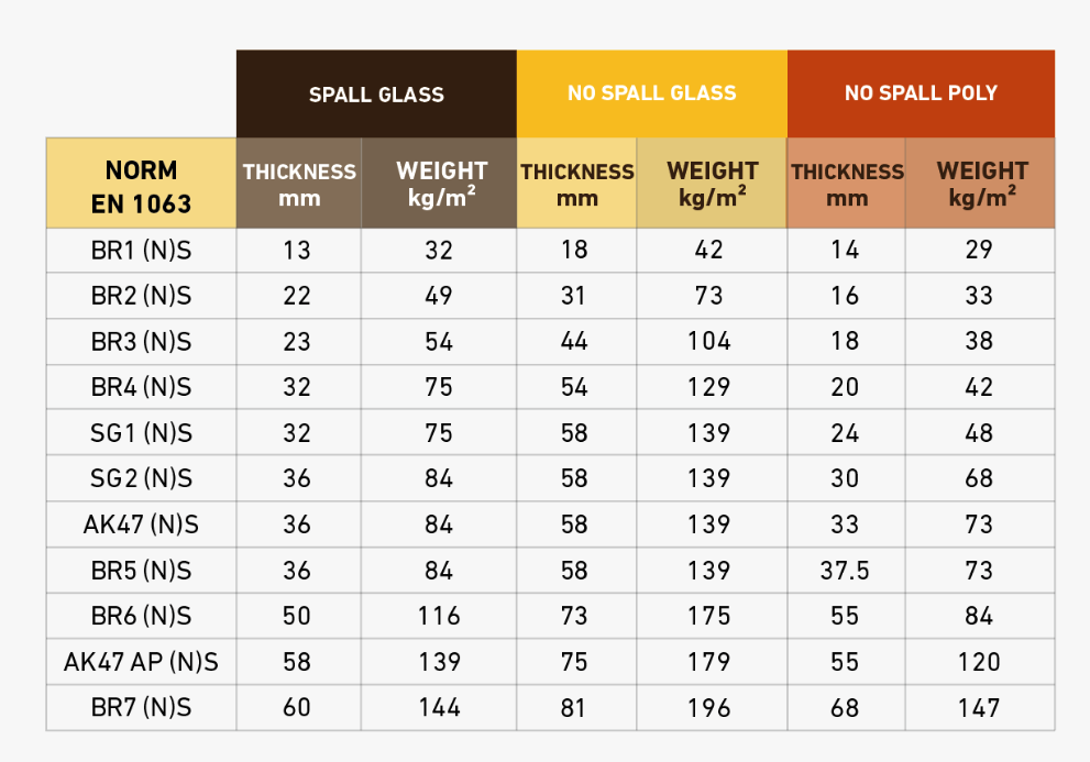 Gewichten kogelwerend glas Bulletproof Technologies