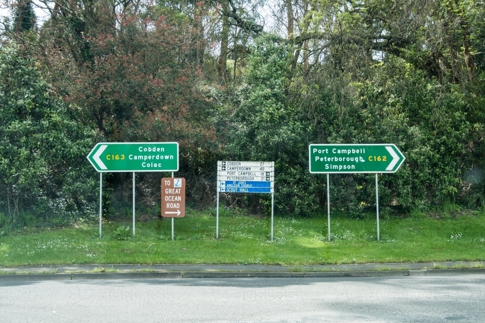 Image of Road signs directing traffic to The Great Ocean Road Austockphoto